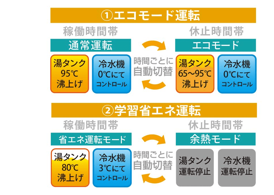 サーバーを利用しない時間を学習し、自動で温水タンクの過熱を制限するエコモードを搭載。消費電力を抑えます。