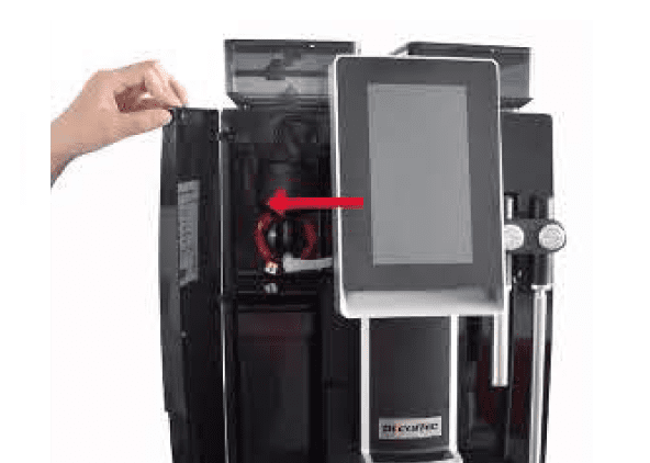 コーヒーかすやカップステイ ( 液受け ) のお手入れは、扉を開け、引き出して簡単に処理できます。
